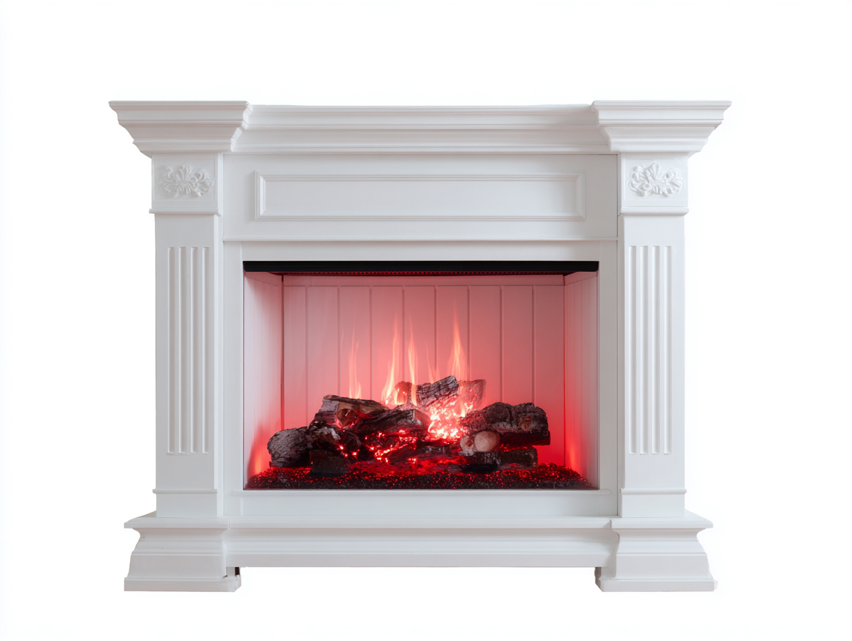 Kamin-Holz-136x32x102 cm-Weiß-Klassischer Wohnstil