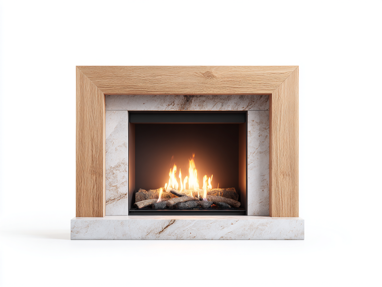 Kamin-Holz-Stein-110x42x108 cm-Natur-Beige-Moderner Designstil