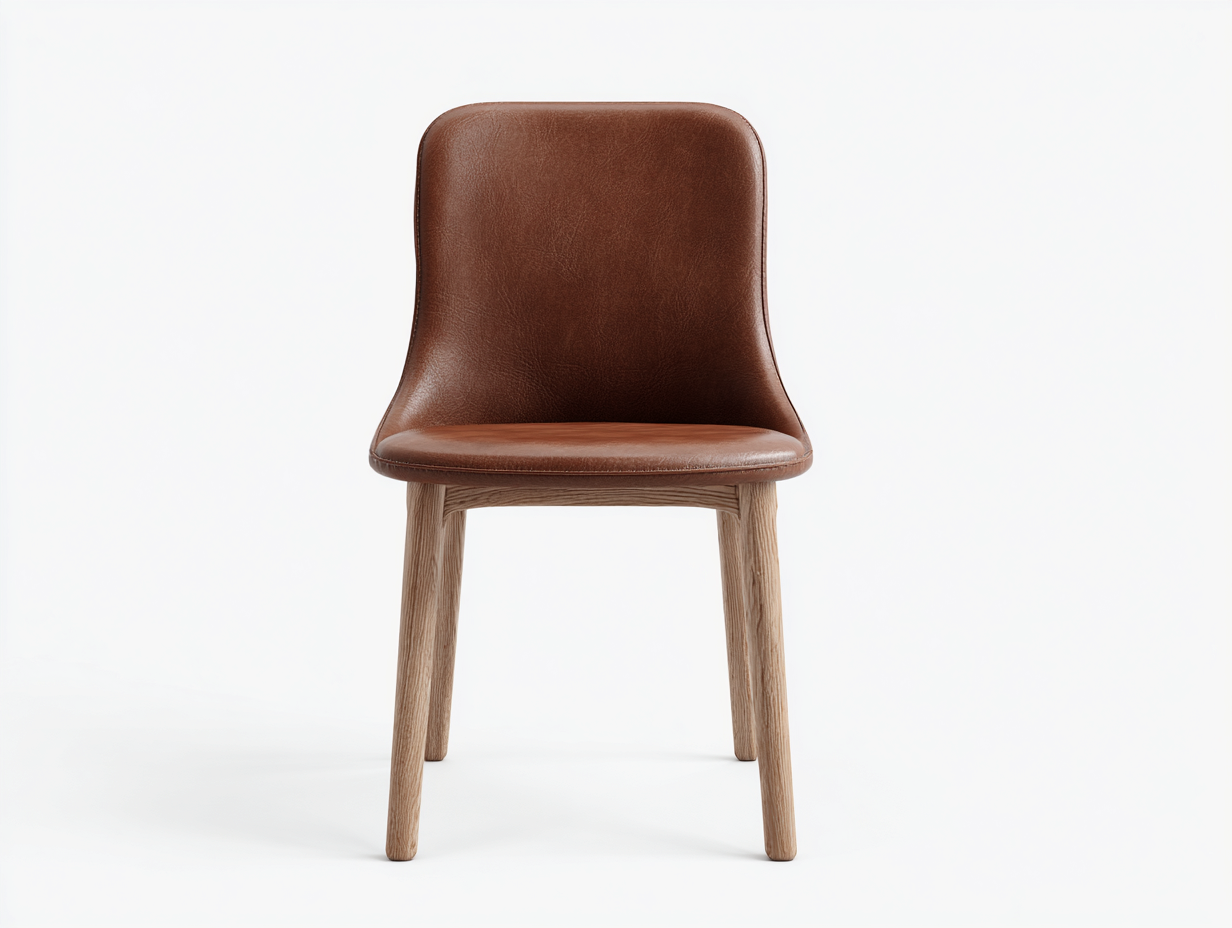 Die Sitz- und Rückenfläche ist mit braunem Leder bezogen, das eine angenehme Haptik und natürliche Optik bietet. Das stabile Gestell aus Holz sorgt für zuverlässige Standfestigkeit und ergänzt das Gesamtbild mit einer warmen Ausstrahlung. Die Verarbeitung ist präzise und auf eine langfristige Nutzung ausgelegt.