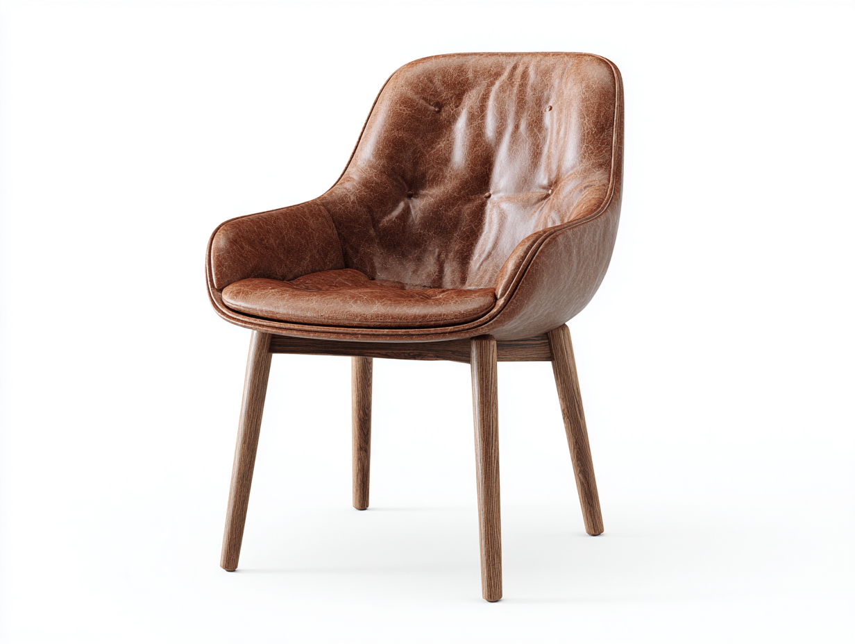 Die Oberfläche ist mit braunem Leder bezogen, das eine natürliche Textur und eine warme Ausstrahlung bietet. Das stabile Gestell aus Holz ergänzt das Design und sorgt für eine zuverlässige Standfestigkeit. Die Verarbeitung ist sorgfältig ausgeführt und auf den täglichen Gebrauch abgestimmt.