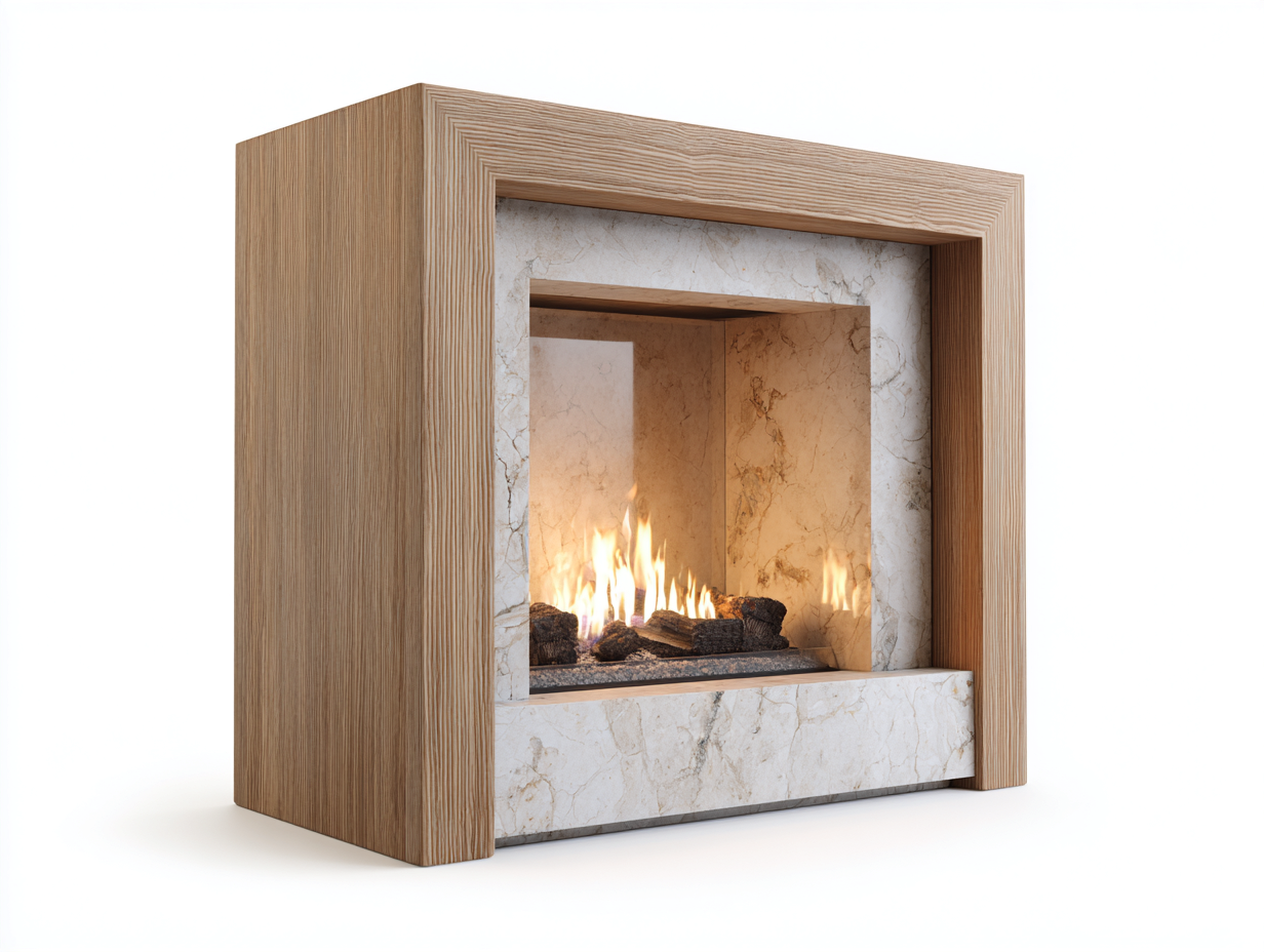 Dieser Kamin überzeugt durch seine kompakte Bauform und eine klare architektonische Gestaltung. Er eignet sich ideal für Wohnbereiche, in denen eine warme Atmosphäre und ein stilvoller Blickfang geschaffen werden sollen.
