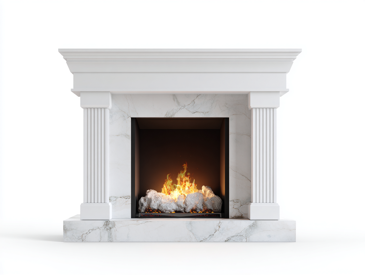 Dieser Kamin kombiniert eine klare Linienführung mit klassischen Designelementen und eignet sich ideal für Wohnräume mit stilvoller Einrichtung. Die ausgewogene Form sorgt für eine ruhige Präsenz und schafft eine angenehme Atmosphäre.